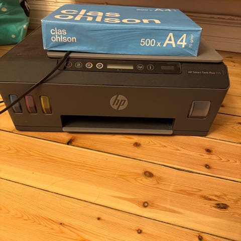Selger HP Smart Tank 5106 som ny. Skriver ut, kopierer og skanner. WiFi og enkel bruk med HP Smart-appen. Fungerer helt som den skal.