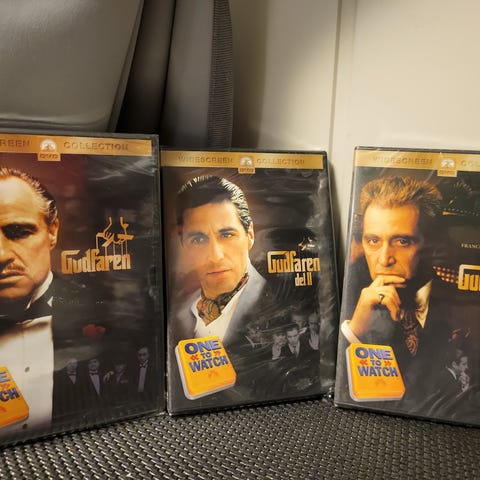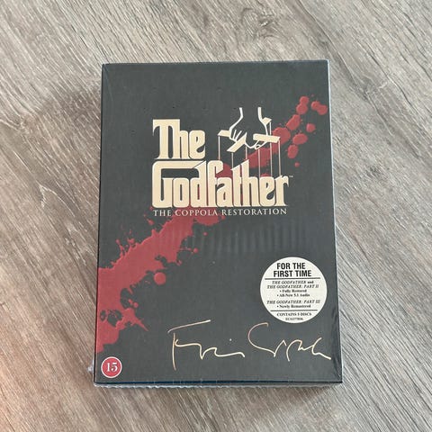 Alle tre Gudfaren filmer på blu-ray selges samlet.
