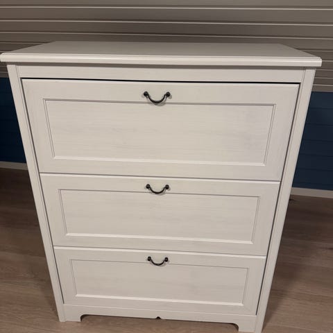 Ikea hylle 2x2 inkl. fastskrudde skuffeseksjoner og skap. Kan se ut som fargeforskjell på bilde, men viser ikke i vanlig lys. Ubetydelige bruksmerker. Den kan ses og hentes i Larsgården .