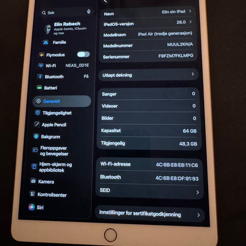Lite brukt IPad Air 3 generasjon. 256 GB selges