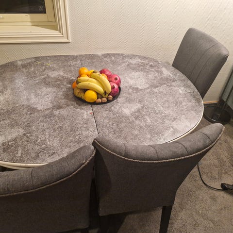 Et gammelt bord, godt brukt gis bort. eller for høyst bydende.