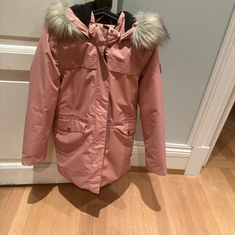 Vinterjakke str 134. Lite flekk bak armen og foran. Se bilder.