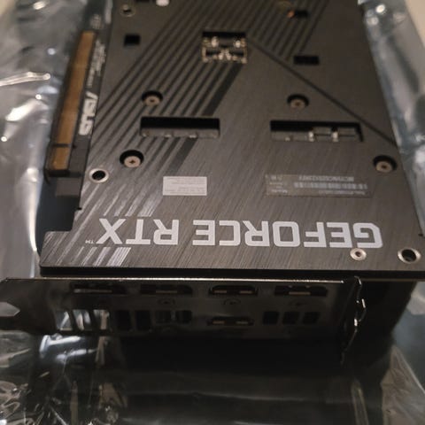 ASUS GeForce RTX 2060 Super skjermkort med 8 GB VRAM. Utstyrt med to kjølevifter og flere tilkoblingsporter inkludert DisplayPort og HDMI. Passer til PC for grafikkintensive oppgaver og gaming.