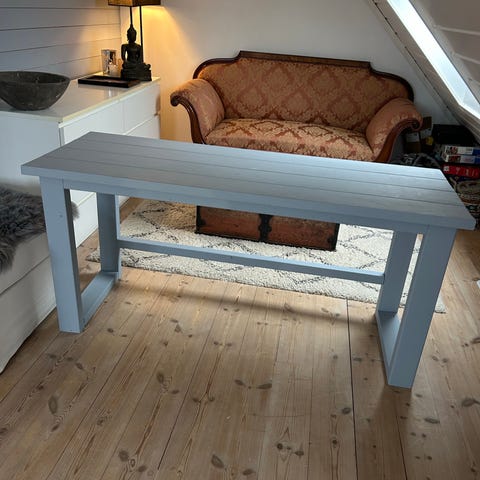 Svært pent brukt skrivebord av typen Trotten fra IKEA. Romslig og godt skrivebord. Brukt med to pc skjermer og tastatur, og hatt svært god plass. Skrivebordet er tilsvarende som på bilde nr. 1, helt hvitt.