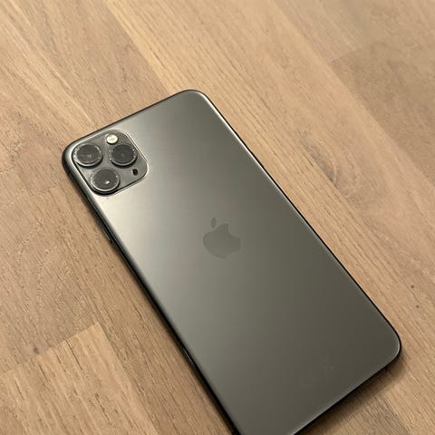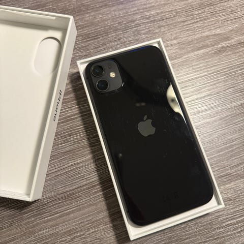 Apple iPhone 11 med 64 GB lagringskapasitet. Telefonen har et hvitt ytre og leveres i original emballasje. Modellen har to kameraer på baksiden og en skjerm med svart front.