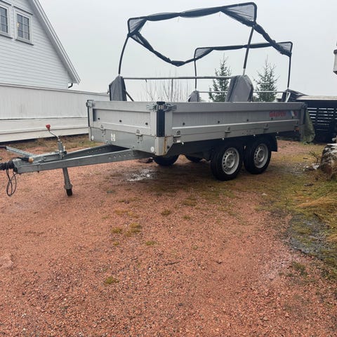 Selger en Gaupen boggi tilhenger. Det er ettermontert ekstra sidelemmer. Disse kan enkelt fjernes.