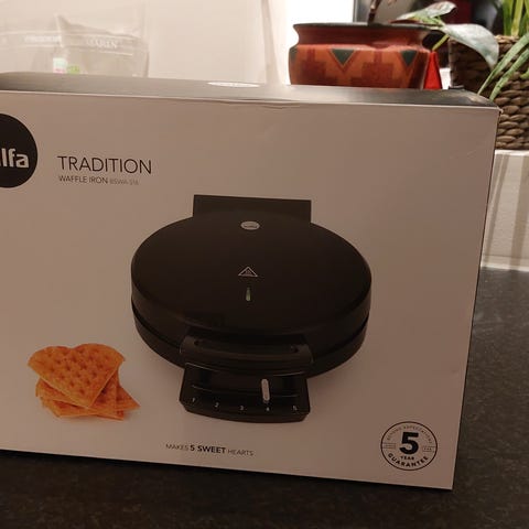 Vaffeljernet er ubrukt og har kun stått lagret i noen år.