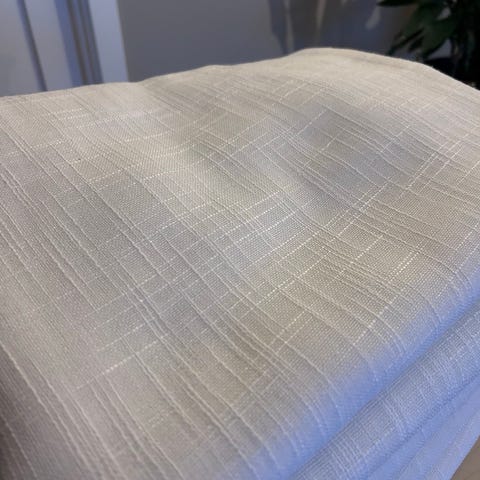 Ensfarget gardin i polyester med påsydd multifunksjonsbånd som gir fleksible opphengsmuligheter. Gardinen kan henges opp ved hjelp av skjulte hemper for jevne folder, i løpegang, eller med ringer og rynkebåndskroker for tradisjonelt oppheng. Materialet har en glatt overflate og faller pent. Gardinen er ikke lagt opp, men har en "hot cut"-avslutning nederst som hindrer at den rakner.