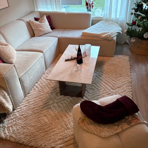 Carlo Chenille gardiner fra Kid i beige farge med målene 140x220 cm.