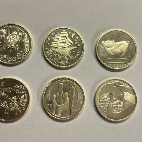 5 stk Verdens minste gullmynter, 1/25 oz, 999 Gull.