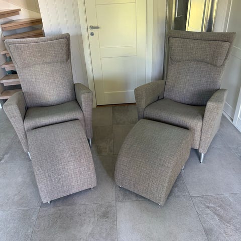 Bord ig konsollbord som er brukt til denne gruppen selges også. Krom/glass.