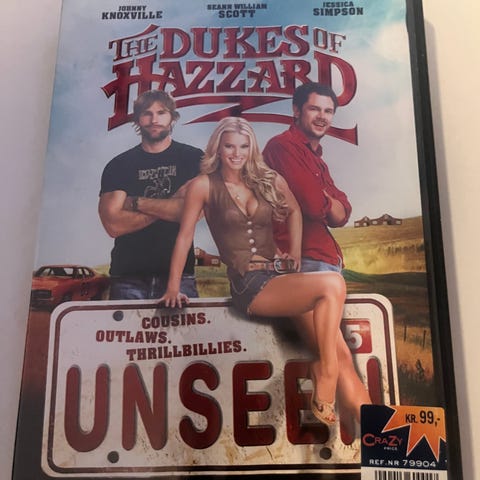 The Dukes of Hazzard DVD med filmen Unseen. DVD-formatet inneholder filmen med skuespillere og tema fra serien The Dukes of Hazzard. Norsk tekst.
