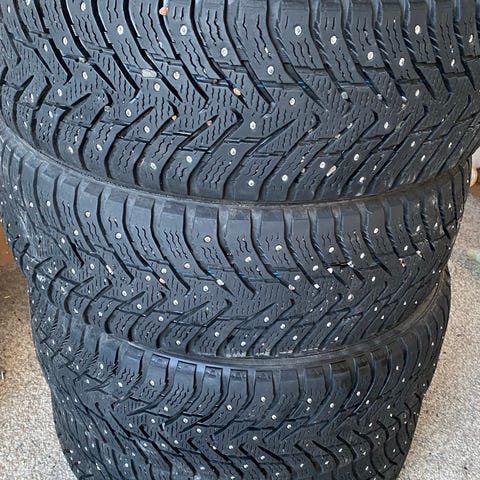 Dekkene er lite brukt, med meget god mønsterdybde og piggene i svært fin stand (se bilder). Ingen skader, rifter eller ujevn slitasje.