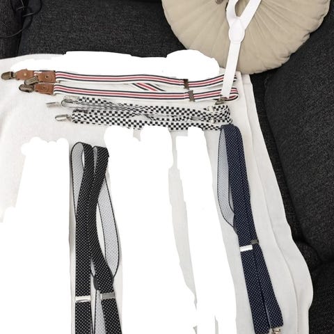 Siggen hvite bukseseler for unisex. Produktet er onesize og har en enkel design og er laget for å brukes som tilbehør til klær.
