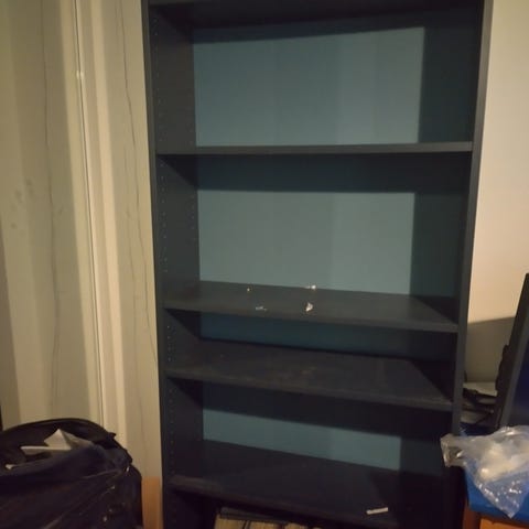 Hyllene er i bøkefinér og kan hentes på Åsjordet.