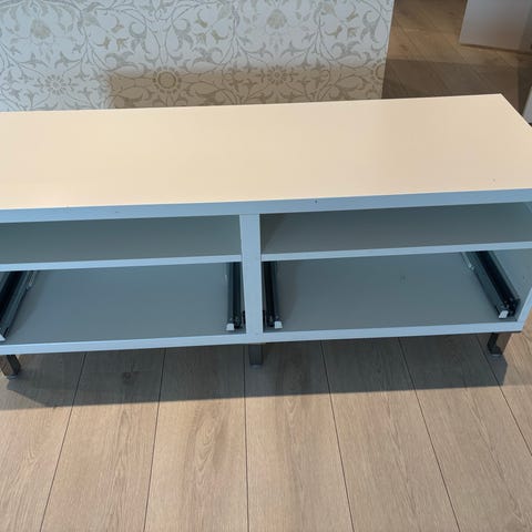 Selger stammen til en BESTÅ TV-benk i svart grunnet flytting. Dører og annet tilbehør kan kjøpes separat hos IKEA, slik at den kan bygges etter eget ønske. Kun brukt i 11 måneder. Nypris i dag: 1 395 kr hos IKEA.