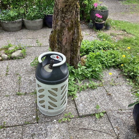 Gassflaske i komposittmateriale med kapasitet på 10 kg. Laget for å være lett og holdbar.