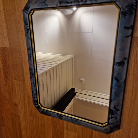 Litt slitent Hylkje speil fra IKEA. Slitasjen kan sees på bildene, ett av bildene er lånt fra ebay for illustrasjon. Designet av A Wallin Irinarchos L Widén, fra 90-tallet. Selges billig grunnet slitasje.