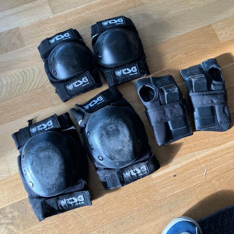 TSG Kids Pad Set beskyttelsesutstyr til Junior i svart farge, størrelse one size. Inkluderer beskyttelse for knær, albuer og håndledd, egnet for barn.