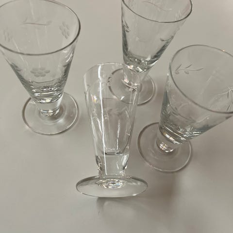 Gamle og flotte glass som er Ca 7 cm høye selges