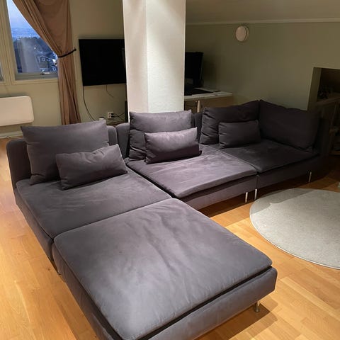 Sofa med sjeselong selges
