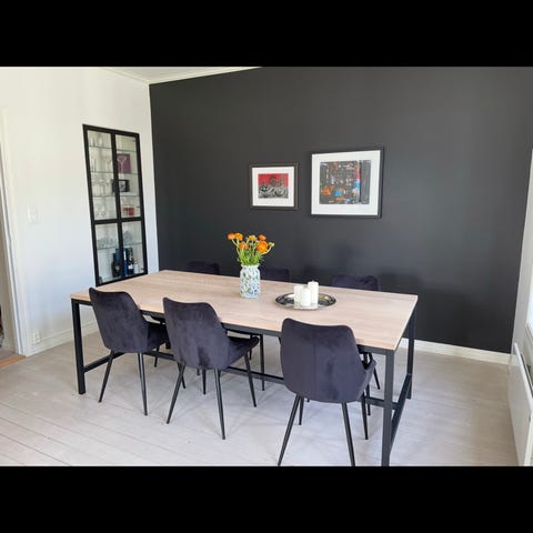 Spisebord i god stand med inleggsplater som aldrig er brukt .vi kjøpte bordet i fjord da var de helt nytt er brukt veldig lite men bordet har noen bruksmerker