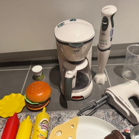 IKEA lekekjøkken laget i tre med røde og gule detaljer. Inkluderer kokeplater, vask med kran, ovn med dør og oppbevaringsplass under. Passer for barn som ønsker å leke matlaging og kjøkkenaktiviteter.