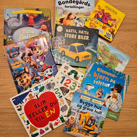 Barnebokpakke med 4 bøker selges samlet for 150 kr.