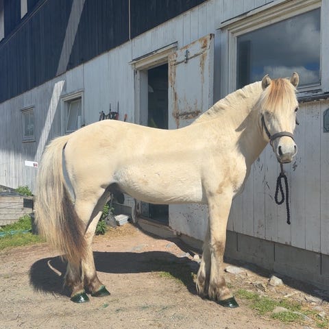 Småberg Sol selges til voksen, flink og erfaren hesteperson. Hun er sittet på, men ikke innridd. Mye tømmekjørt, også med liner, men ikke innkjørt. Hun er i vekst enda, mankehøyde er cirka mål nå. Hun kan mye bakkeøvelser.