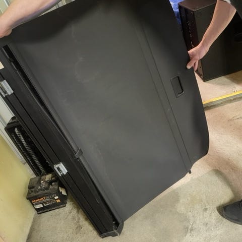 laget for å sikre bagasje i bilen. Nettet er svart og laget i slitesterkt materiale, tilpasset for praktisk oppbevaring og sikker transport av gjenstander i bagasjerommet.