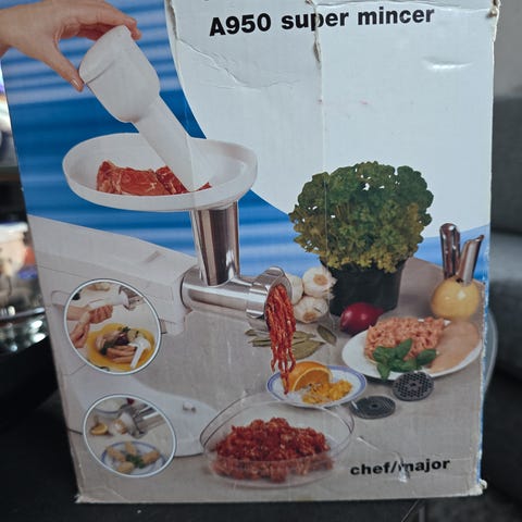 Kenwood A920 kjøttkverntilbehør med flere utskiftbare plater og tilbehør for kjøttkverning. Kompatibel med Kenwood kjøkkenmaskiner, designet for å male kjøtt til ulike teksturer. Inkluderer trakter og tilbehør for enkel bruk og rengjøring.
