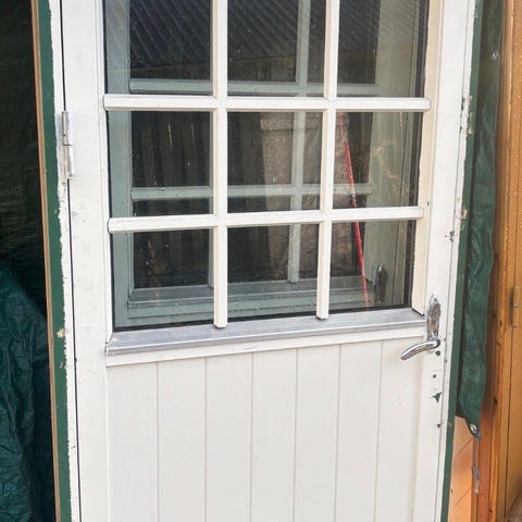 Dør med glass. Karm dørhåndtak og utforinger følger med.