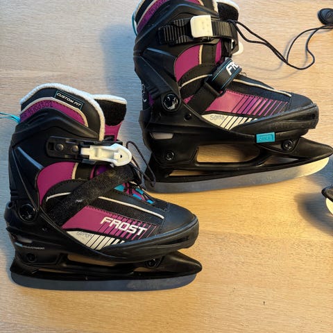 Frost Ishockey Skøyter for barn i størrelse 29-32. Skøytene har svart og lilla farge med justerbare spenner for god passform. Egnet for ishockeybruk.