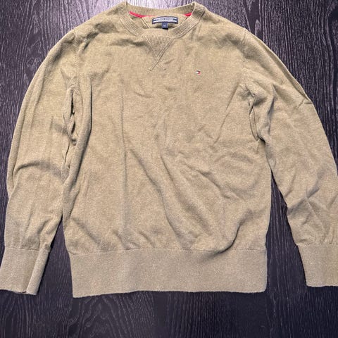 Tommy Hilfiger genser i størrelse 152 for gutt. Grå farge og laget av bomull. Genseren har hette og er egnet for barn i denne størrelsen.