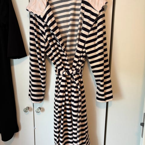 Lekker morgenkåpe i brun som er kort og med hette. Str. M fra Kappahl. Pent mønster. Selges da den ikke blir brukt.