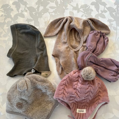 Nøstebarn-luer (ullfleeze og ull/silke) str 74/80 og 86/92