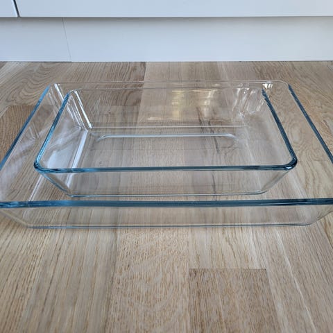 IKEA ildfast form i glass og en av ukjent merke i keramikk.