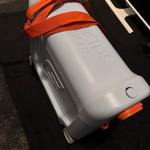 Selger vår Stokke JetKids BedBox, perfekt når man reiser med små barn. Kofferten kan både trilles av barnet selv og brukes som en liten seng/benforlenger på flyet slik at barnet kan sitte eller ligge mer komfortabelt.