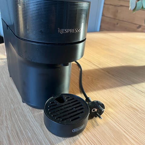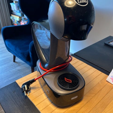 Dolce Gusto kaffemaskin med svart og hvit farge. Passer til enkel kopp kaffe. Kompakt design for hjemmebruk.