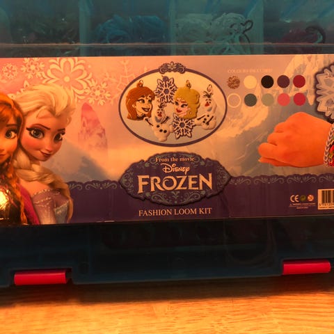 Disney Frozen loom band sett for barn med ulike fargede loom bands, verktøy og tilbehør. Kommer i en fin oppbevaringsboks.