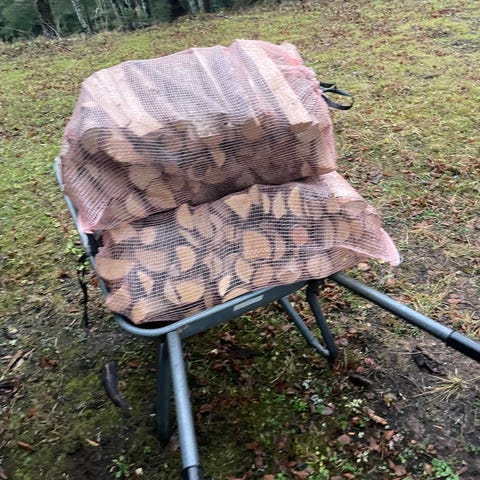 Vedsekk 80 liter med kapp av kvirke fra vår produksjon . Selges rimelig for god orden i fabrikken .
