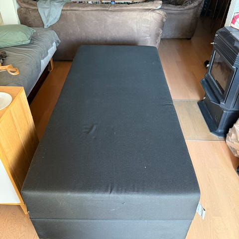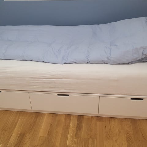 Overmadrass følger med. Det er rom for oppbevaring under sengen.