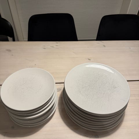 IKEA tallerken med dekorativ kant. Passer til daglig bruk og til servering av mat. 6 stk av hver. Sendes ikke