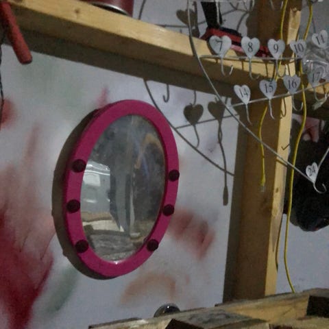 Artek InterArtDesign dekorativ speil med rund form og detaljert ramme. Speilet har et unikt ornamentmønster og er laget med klart glass. Egnet for innendørs bruk som dekorativ veggdekorasjon.