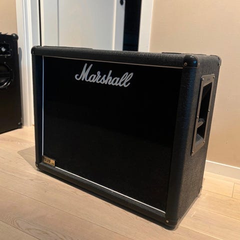 Marshall JVM gitarforsterker og kabinet med kontrollpanel for justering av lydparametere. Forsterkeren har flere innganger og utganger, inkludert høyttalerterminaler. Komplett med beskyttelsesdeksel og tilkoblingskabler. Egnet for elektriske gitarer. Va 10 år gammelt og har hovedsaklig stått i kjellerstua. Kan sendes mot frakt.