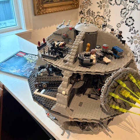 LEGO Star Wars Mos Eisley Cantina byggesett med detaljerte moduler som representerer den ikoniske kantinen fra Star Wars-universet. Settet inkluderer flere minifigurer og tilbehør som kan brukes til samling eller lek.