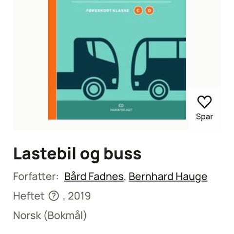 Fagbokforlaget Lastebil og buss Førerkort klasse C og D bok. Boken er ment for førerkortopplæring for lastebil og buss, og dekker relevante temaer for disse kjøretøyklassene.