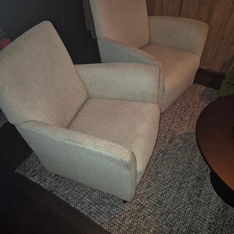 2 stk stol og krakk sett. Beige stoff. Selges samlet kr 2000, eller 1000 pr sett. Stolene er pent holdt og i meget god stand. Fremstår som lite brukt.