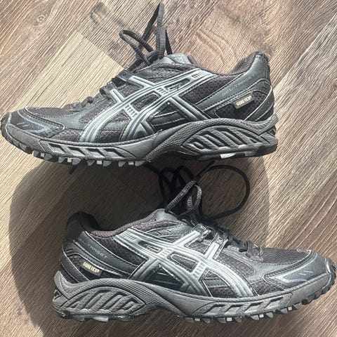 Selger eit par meget pent brukte pigg-joggesko frå Asics. Har vore litt for små til meg og lite brukte. Kanskje dei passer betre til deg? Har prøvd å ta bilder frå alle vinkler, dei er pent og lite brukte på snøføre. Er veldig fornøgd med Asics som merke, men må opp en størrelse. Pen lilla farge, med refleks og lilla reimer.