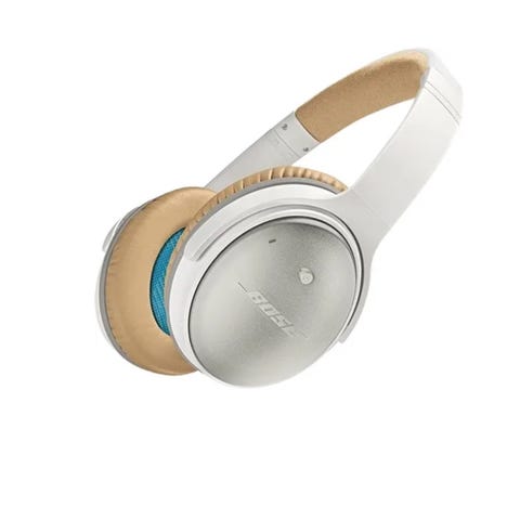 Bose QC25,mangler ledning.Det er brudd i festet til øreklokkene på begge sider.Kan muligens fikses.Nesten nye øreputer,ellers virker de som de skal.